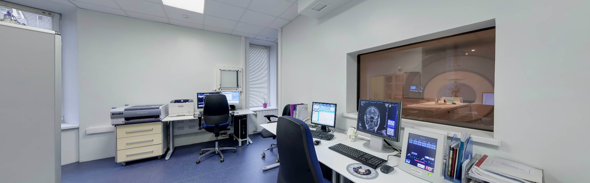 Кабинет магнитно-резонансной томографии оснащен современным мр-томографом MAGNETOM Esprее фирмы SIEMENS c напряженностью магнитного поля 1.5 тесла. Томограф обладает самым широким (диаметр-70см) и коротким (длина -125см) туннелем, в нем есть освещение, имеется вентилятор, обеспечивающий приток свежего воздуха, кнопка экстренной связи с врачом. Томограф укомплектован полным набором катушек, включая специализированные катушки для всех суставов.